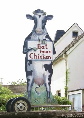 Werbung eines Hähnchengrills. Aufgenommen während der Fahrt aus dem Auto raus...