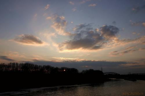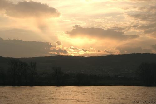 Heute wird ein schöner Tag. Sonnenaufgang am Rhein.