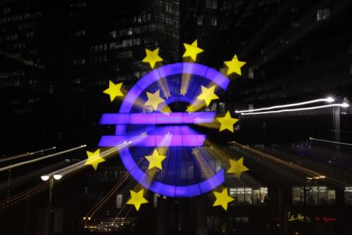 Weiter Richtung Main über den Willy-Brandt-Platz mit dem Eurozeichen